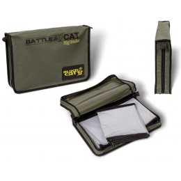 5 velkých a 5 malých extrémně vyztužených ochranných krytů uvnitř Rig Wallet XXL zaručuje bezpečné uložení hotových sumcových návazců a nabízí rybáři dobrý přehled při práci na vodě.