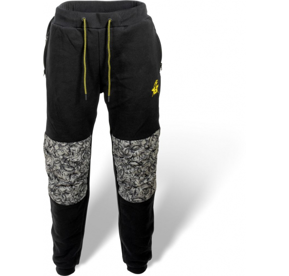 Pohodlné tepláky ve stylovém Black Cat designu. Zobrazení mnoha malých sumců vytváří kamuflážový vzor. K vodě a pro volný čas.