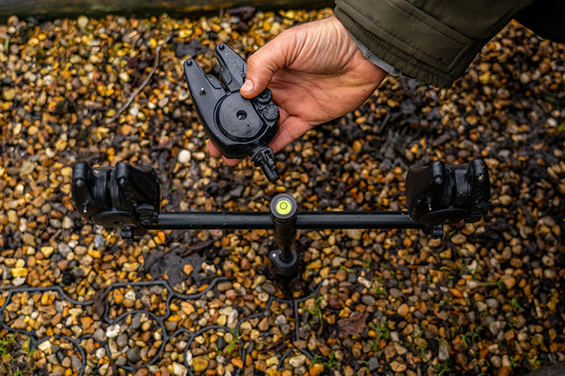 - Pro použití s hrazdou QR Buzz Bars: odstraňte prostřední signalizátor/rohatinku a vložte vodováhu, kterou zajistíte pootočením o 10stupňů.