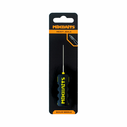 Žlutá Heavy je velmi tvrdá jehla bez zobáčku. Místo něj má ostrý hrot a v něm zářez, jenž umožňuje uchycení vlasového přívěsu. Je vhodná pro naprostou většinu nástrah, jako je boilie, vařený partikl, pelety a další, zejména pak na tvrdší boilie. Zacházejte s ní ale opatrně, abyste si jí nevrazili do ruky. Jehly Mikbaits jsou z kvalitního materiálu a mají velmi příjemnou ergonomicky tvarovanou rukojeť, takže se s nimi velmi dobře pracuje.