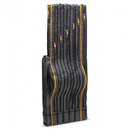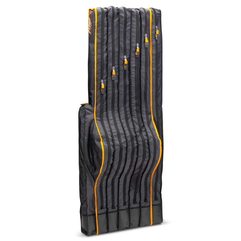 Prime Holdall má 5 přihrádek na navázané pruty, plus jednu postranní například na podběrák nebo deštník. Navíc na opačné straně naleznete ještě jednu menší kapsu, do které můžete dát například vidličky. Silně polstrované popruhy usnadňují přepravu. materiál 200D x 200D snadno omyvatelný povrch zesílené dno rozměry 167 x 68 x 25 cm ...