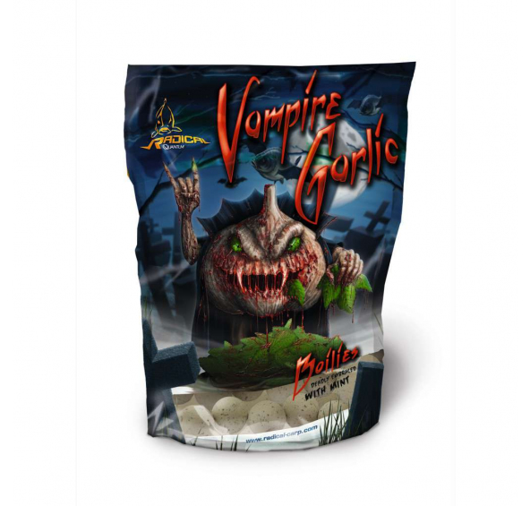 Boilies Radical Vampire Garlic 1kg byl vyvinut v Německu, jeho složení má okamžitý vliv na rychlé uvolnění unikátního souboru atraktorů a přilákání ryb na silnou chuť. Urychluje rybí trávení a tím podporuje další krmení, není třeba dlouhodobě vnadit.