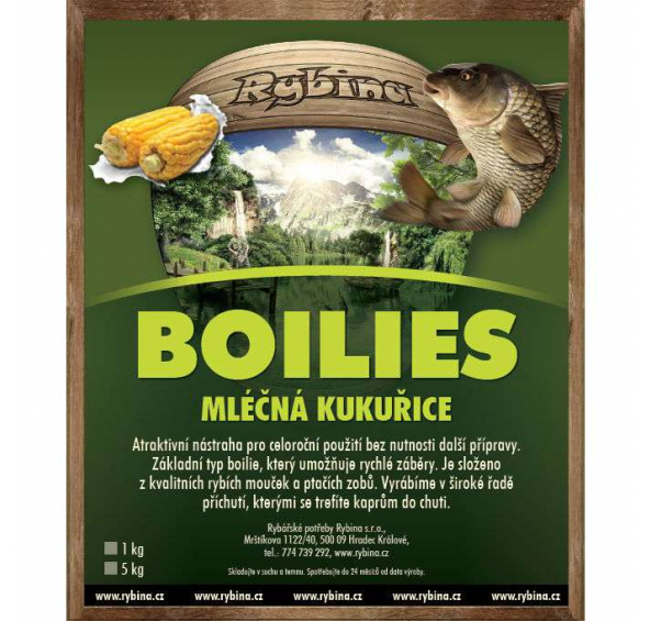 Popis produktu Boilies Rybina - mléčná kukuřice 5kg 20mm
