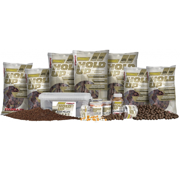 HOLD UP je směsí frementovaného (kvašeného) krevetového masa v kombinaci s živočišnými složkami s extrémně silnou pachovou stopou. Po dopadu do vody boilies okamžitě uvolňuje atraktační látky a rychle láká zejména velké kapry i z velké vzdálenosti. Fermentované ingredience navíc výrazně urychlují stravitelnost boilies (ryba se nepřesytí), a proto Hold Up doporučujeme také na masivní krmení.