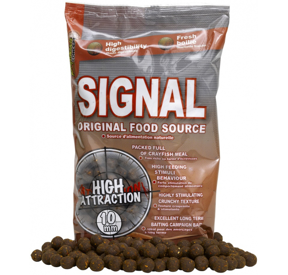 Signal má určitě nejkoncentrovanější naturální pachovou stopu (silný živočišný zápach) ze všech receptur a patří asi k nejpoužívanějšímu boilies na lov velkých kaprů na velkých vodních plochách. Hlavními složkami jsou moučky z raků, škeblí a ostatních vodních živočichů včetně skořápek pro docílení křupavého efektu, který milují hlavně velké a staré ryby.