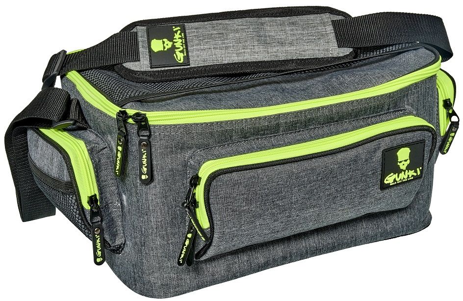 Taška pro uskladnění všeho potřebného na přívlač. Obsahuje velkou hlavní komoru na zip, tři menší vnější kapsy na zip, madla do ruky a nastavitelný polstrovaný popruh přes rameno. Pevná odolná tkanina je doplněná o kvalitní zipy. To vše v Gunki designu. Součástí jsou i dvě krabičky na nástrahy o rozměrech 31,5x23x5 cm. Rozměr tašky: 33x22x18 cm.