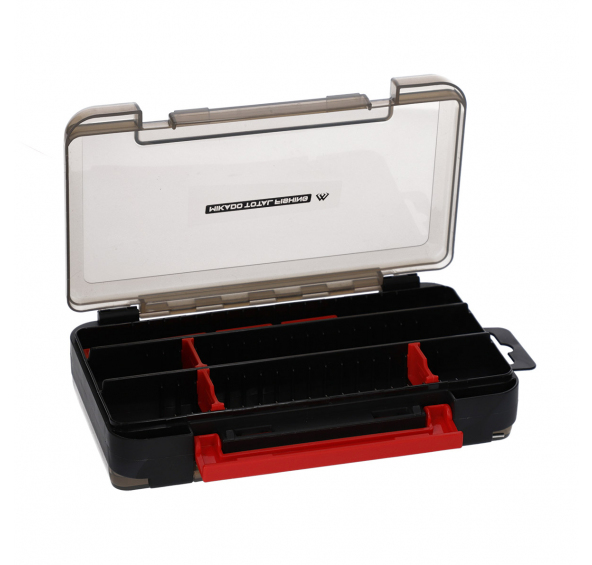 Oboustranný rybářský box vyrobený z kvalitního plastu s bezpečným uzavíráním. Vybavený houbičkou na jedné straně a klasickými plastovými přihrádkami na straně druhé. Ideální pro rotačky, woblery, třpytky a cikády.