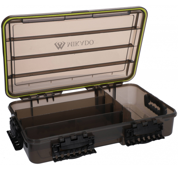 Jednostranné, 100% vodotěsné, černé rybářské krabičky s těsněními. Dolní oddíly byly vybaveny speciálně vyříznutou pěnou. Mají také klasické nastavitelné přihrádky bez pěny pro uložení nejrůznějších nástrah.