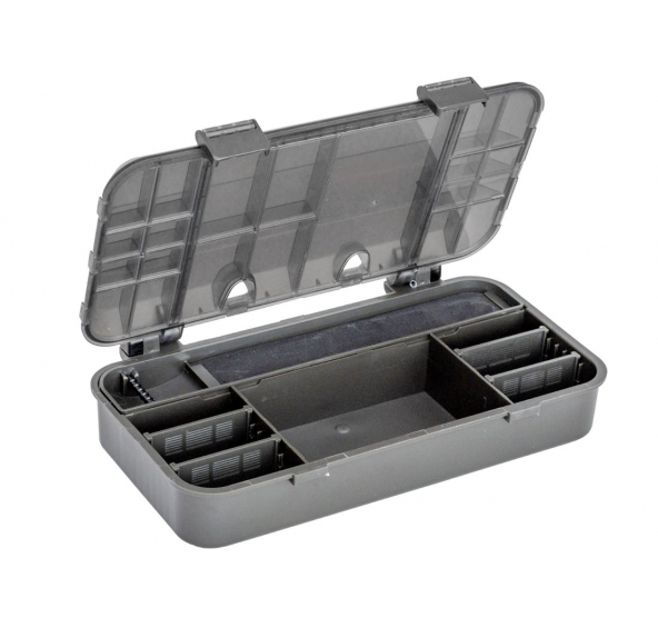 Box Marshal RS242 je kompaktní a praktické úložné zařízení určené speciálně pro kapraře. Velikost 24 x 12,5 x 5,5 cm je ideální pro organizované uložení drobného rybářského příslušenství, jako jsou háčky, obratlíky, gumové nárazníky a další drobné doplňky. Jeho vícekomorový design napomáhá rychlému přehledu a pohodlnému používání, takže budete mít vždy po ruce to, co potřebujete. Box je vyroben z odolného plastu, který je odolný vůči povětrnostním vlivům, a zaručuje tak dlouhou životnost a spolehlivost i v těch nejnáročnějších podmínkách. Tento kompaktní box je ideální volbou, když potřebujete snadno přenosné a zároveň praktické řešení pro skladování. - Velikost: 24x12,5x5,5 cm Výrobce: Carp Zoom