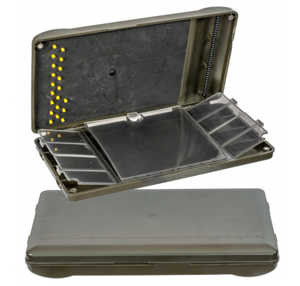 Praktický box na drobnosti a návazce ve tvaru knížky. Na jedné straně je pěnou vystlaná plocha pro přechovávání hotových návazců a ve druhé polovině je jedna větší a 8 menších uzavíratelných přepážek na rybářskou bižuterii. Díky malým rozměrům se vejde třeba i do boční kapsy na pouzdře na udice. Výrobce: Carp Zoom