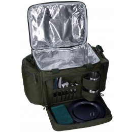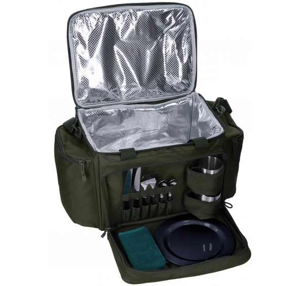 Jakostní brašna s termoizolační vrstvou je vybavena jídelním setem v přední kapse.