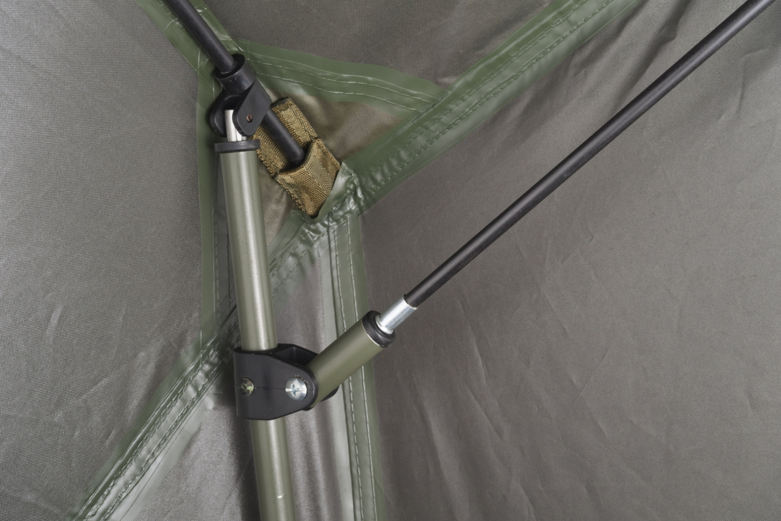 Luxusní a prostorné brolly se sklolaminátovou konstrukcí z osmi žeber o průměru 8 mm. Čtyři žebra jsou kotvena k zemi a zbývající žebra jsou propojena zpevňovací obručí. To zajišťuje extrémní pevnost a stabilitu celé konstrukce, podpořenou pláštěm z materiálu M-TEC 410. Velkou výhodou jsou dvě rozměrná zadní okna a prostorově úsporný středový spoj, který zvětšuje místo nad hlavou. Součástí brolly je i kvalitní PVC podlaha, dvě přední a dvě boční bouřkové tyče a sada zavrtávacích kolíků....