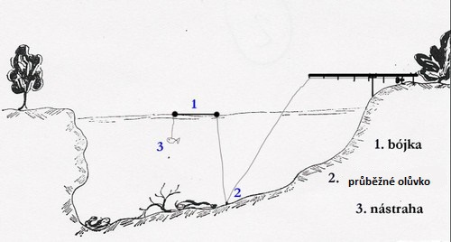 3. Na háček připevněte nástrahu a ukotvěte pomocí zátěže na zvoleném místě.