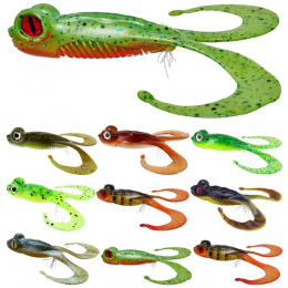 Nástraha se dvěma ocásky, která věrně napodobuje žábu. Velké oči ještě zvyšují její atraktivitu. Průřezy na offsetový háček pro lov v překážkách. S žábou je ideální prochytávat okolí břehů, rostlin nebo potopených stromů. Nastražit ji můžete celou řadou způsobů pomocí klasické jigové hlavičky, zavrtávací hlavičky anebo na offsetový háček. Ideální nástraha pro lov především štik, ale neztratí se ani při lovu sumců. Délka 10 cm, váha 16,1 g.
