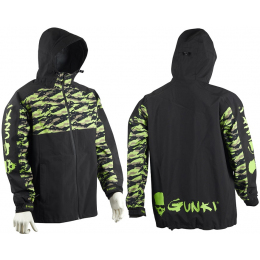 Technická nepromokavá bunda. Vodní sloupec 28000 mm vás spolehlivě ochrání před deštěm a větrem. Bunda má podlepené švy. Prodyšnost 3000 g/m2 přidává komfort při nošení. Volný střih umožňuje pohodlný pohyb. Stahování kolem zápěstí proti zatékání vody. Nastavitelná kapuce. Zapínání na zip. Dvě boční kapsy na zip a malá vnitřní kapsa. Všechny zipy jsou nepromokavé. Vnější tkanina 100% nylon, podšívka 100% polyester.