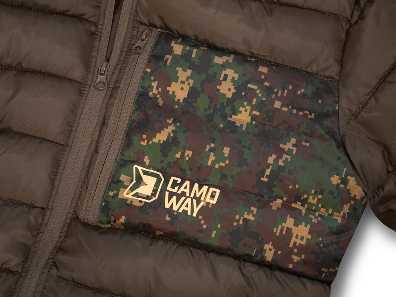 Design se skládá z tmavě hnědé barvy zkombinované s digitálním camo vzorem doplněným stylovým logem CamoWAY ve světlé barvě.