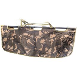 Tyčový vážící sak na úlovky. Skládací pevné tyče, silné zipy na obou stranách, pevná a odolná PVC tkanina pro komfort úlovku i snadné čištění, odtok vody na obou stranách, madla na přenášení, transportní obal. Kamufláž DPM. Rozměry: 120x35x46 cm, transportní rozměry: 67x20 cm, váha 1,4 kg.