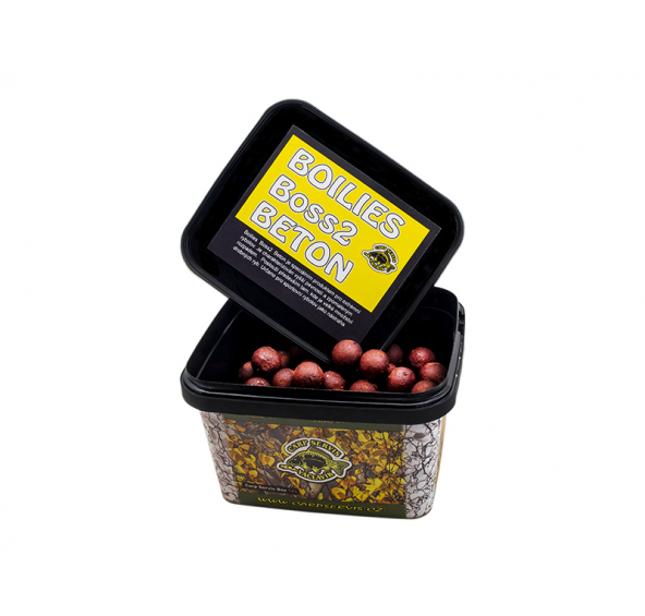 Ty z běžného boilies udělají v krátkém čase hrášek a nakonec jej zcela udolají. Boilies Boss2 Beton je přesně tím, co pomůže podobné situace vyřešit. Složením se jedná o nástrahu tvrdě masového původu, jež obsahuje 50 % živočišných komponentů, které toto boilies jasně staví do role nutriční bomby. Díky značně pevnější konstrukci je i částečně omezeno uvolňování drobných částeček z povrchu a tím se omezuje záběrovost od menších kaprů. Díky těmto vlastnostem může být čekání na záběr o trošku delší, ale zato se můžeme s touto nástrahou dočkat trofejních úlovků i na vodách s osádkou menších ryb. Toto boilies mohou s úspěchem použít i ti rybáři, kteří chtějí svou montáž ponechat mnoho hodin bez přehození a vynutit si tak záběr od nedůvěřivých kaprů.