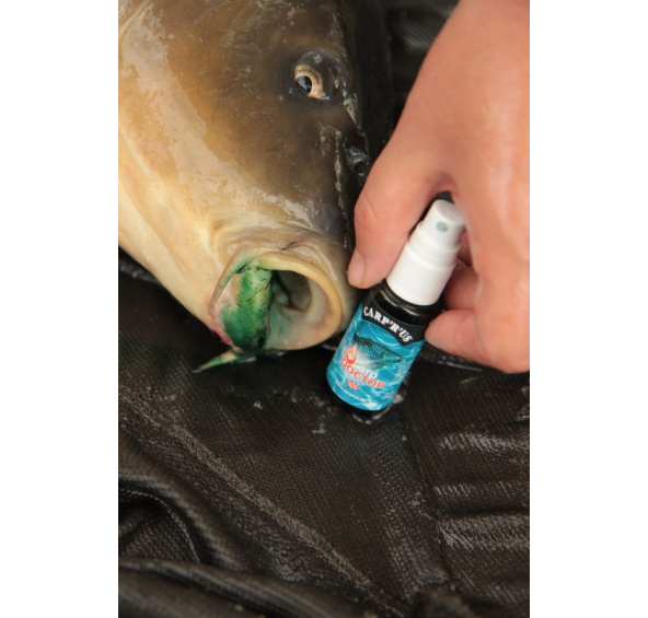 Pro maximální možnou ochranu kaprů jsme vyvinuli tento desinfekční přípravek, kterým můžete u ryb ošetřovat jak vpich po háčku, tak zanícené šupiny nebo jakékoliv jiné zranění. Po aplikaci doporučujeme nechat pár vteřin působit.