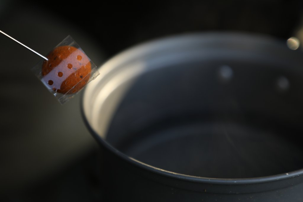 Návod k použití: folii zastřihněte tak, aby pokryla celé boilies. Boilies vložte do folie a na krátkou chvíli ponořte do horké vody.