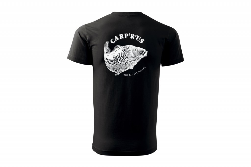 Stylové tričko v černé barvě s logem Mouthsnagger na prsou a tradičním kaprem Carp´R´Us na zádech.