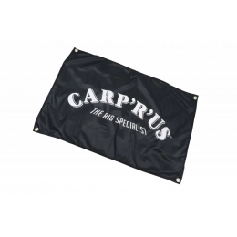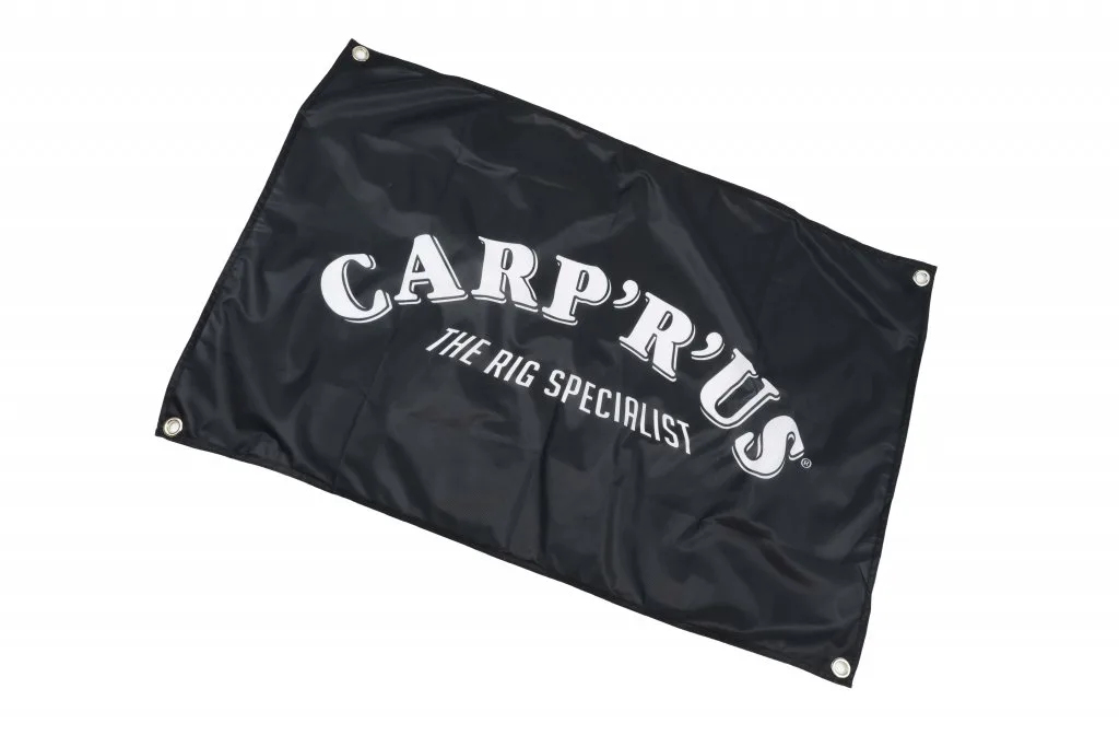 Černá, reklamní vlajka s logem Carp´R´Us. Vlajka má v každém rohu kovová oka pro uchycení.
