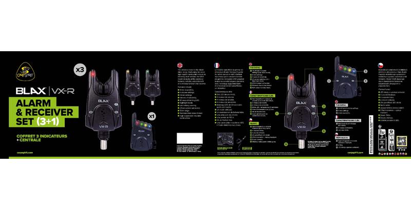 Bezdrátová sada 3 hlásičů (indikátorů záběru) a příposlechu z řady BLAX pevný a odolný plast ABS 4 možnosti volby zvuku, 4 úrovně hlasitosti a citlivosti(plus tichý režim) barevné LED diody s vysokou svítivostí dosah 150 m, paměť posledního nastavení 20sekundová LED indikace záběru, funkce nočního světla 2,5mm napájecí konektor, upozornění na nízký stav baterií závity z nerezové oceli, šňůrka na přijímač napájení: hlásič 9V baterie, přijímač 3 baterie AAA (baterie nejsou součástí výrobku)...