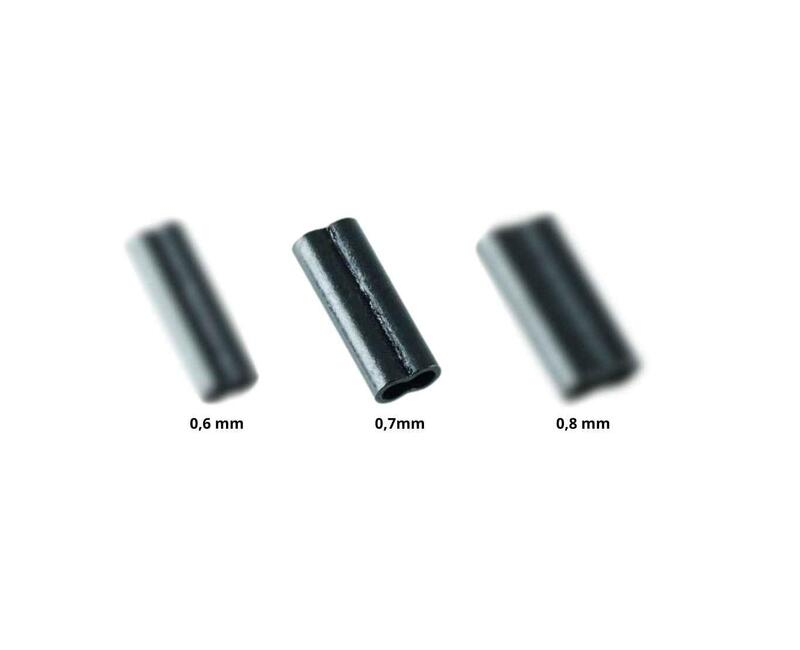 Dvojité krimpovací svorky s matným povrchem.