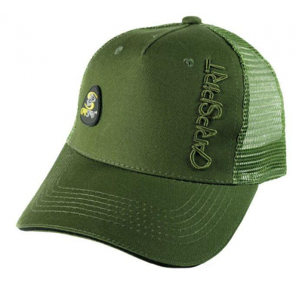 Zelená kšiltovka se zahnutým kšiltem a logem Carp Spirit. Materiál: bavlna/síťovina, univerzální velikost.