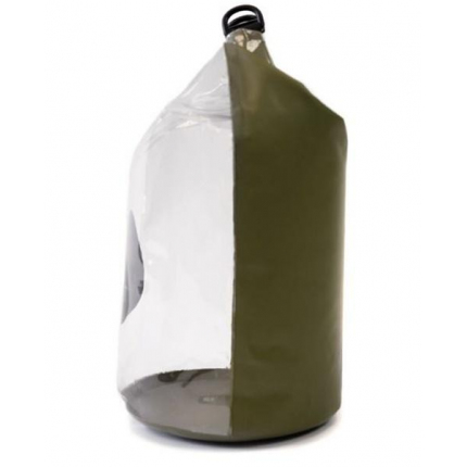Voděodolná taška o objemu 20 l má zatavené švy a zatahovací nepropustný uzávěr. Z jedné strany je průhledná pro rychlou orientaci v uloženém obsahu. Ochrání před vlhkostí cennosti, hodí se dobře i na přepravu vlhkých či mokrých věcí, jako jsou sítě, brašny na úlovek a podobně.