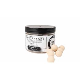 Carp Freaks jsou plovoucí boilie vyrobené dle tajného receptu známého britského kapraře Marka Pitcherse. Jejich neobvyklá ovocno-smetanová vůně je vysoce atraktivní. Zároveň mají perfektní plovoucí vlastnosti, hodí se tedy i na montáže typu Ronnie rig či Zig rig. Vyrábí se v bílé a washout růžové barvě v průměru 14 mm. V balení je i polštářek s dipem na oživení pop-up. Doporučujeme ho nepoužít hned, ale až po nějakém čase, kdy pomalu začínají pop-up vyčichávat.