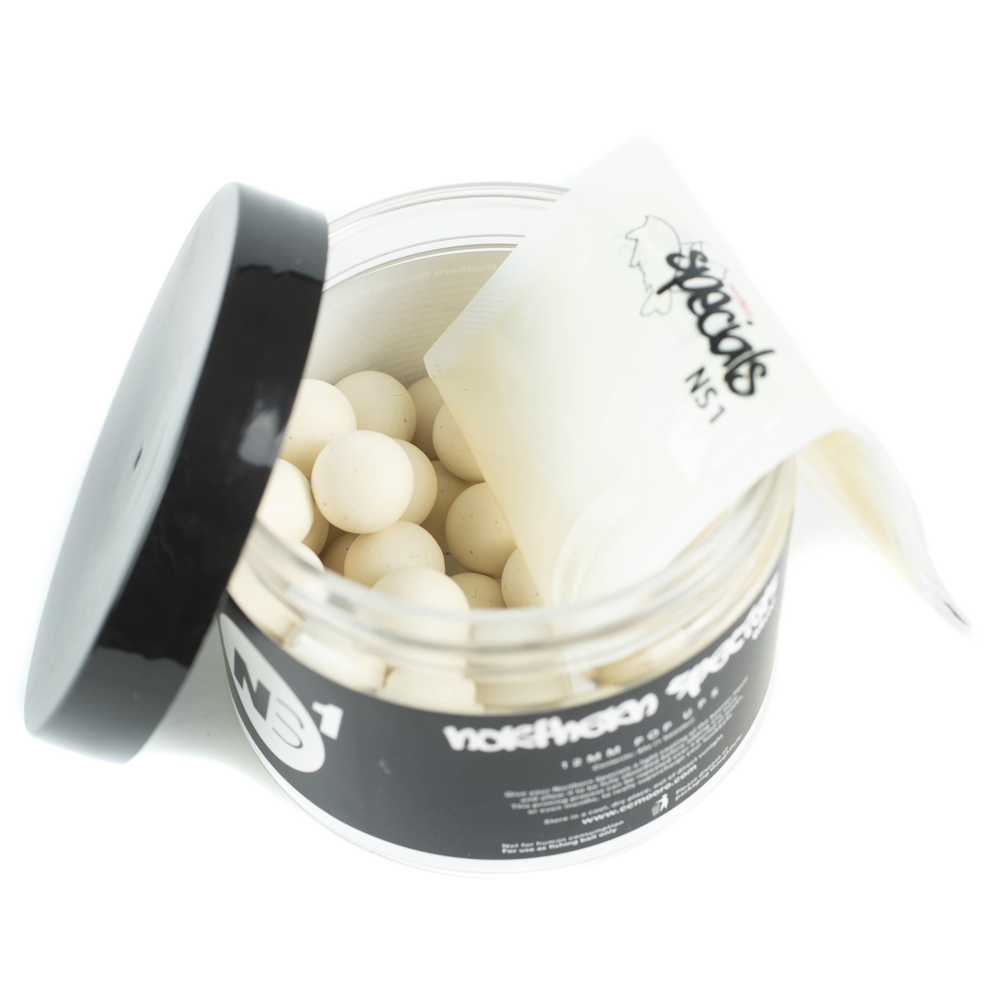 Plovoucí boilie NS1 (Northern Specials) jsou vyráběny dle receptury anglického profi kapraře Gaze Farehama, který ji spolu se svými kamarády roky vypiplával k dokonalosti. Specifický citrusový nádech dává tušit silnou atraktivitu a použitelnost po celý rok včetně velmi studené vody. Vyrábí se v průměru 12 mm (45 ks), v barvách bílá, žlutá, růžová a oranžová. V kelímku je přiložený tekutý aktivátor, který můžete použít ve chvíli, kdyby při delším skladování začala vůně pomalu ochabovat.