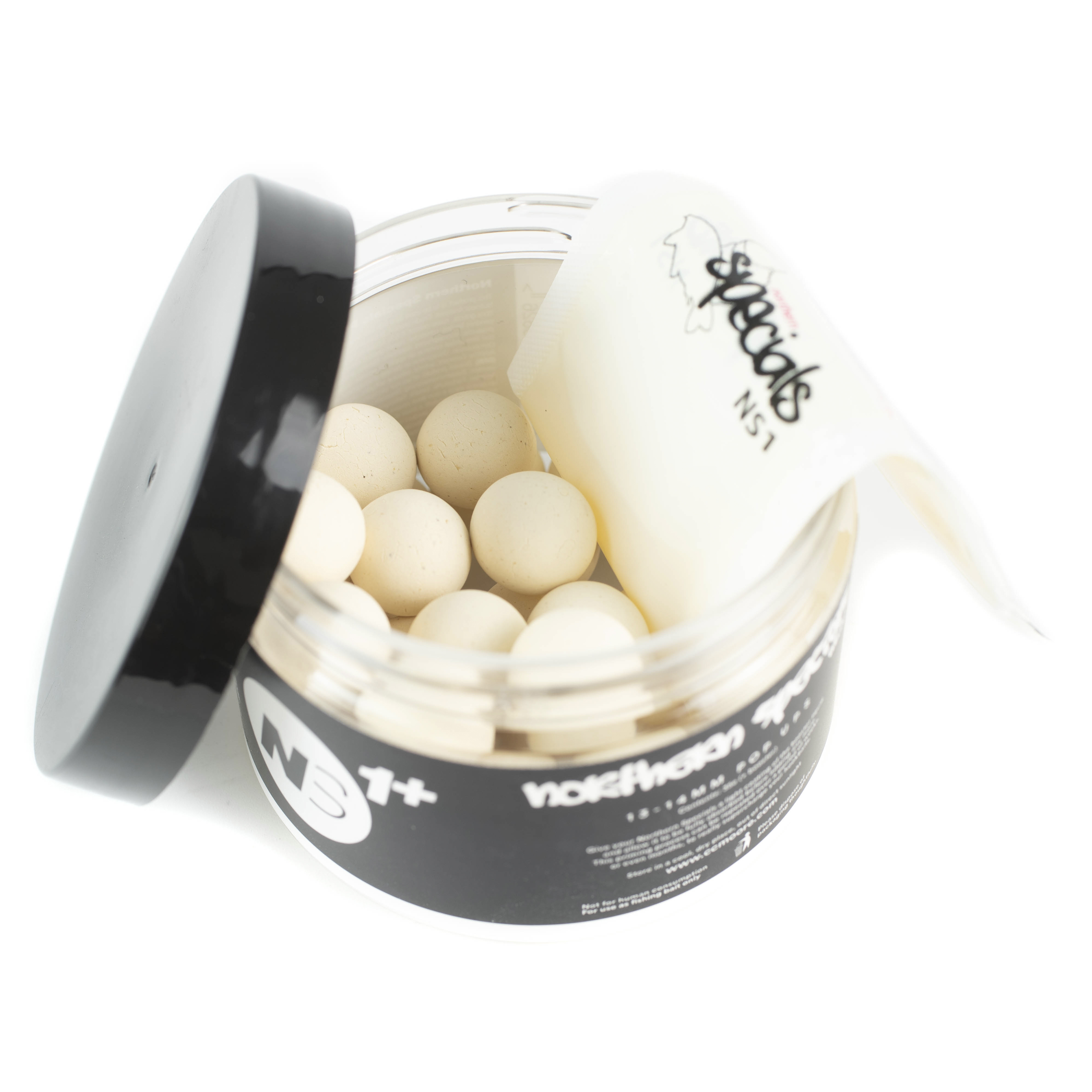 NS1+ v průměru 14 mm (35 ks), v barvách bílá, žlutá, růžová a oranžová jsou vylepšenou a především více plovoucí variantou klasických NS1. proto se velmi dobře hodí i pro lov ve sloupci způsobem Zig-rig nebo Chod-rig. Plovoucí boilie NS1 (Northern Specials) jsou vyráběny dle receptury anglického profi kapraře Gaze Farehama, který ji spolu se svými kamarády roky vypiplával k dokonalosti. Specifický citrusový nádech dává tušit silnou atraktivitu a použitelnost po celý rok včetně velmi studené vody. V kelímku je přiložený tekutý aktivátor, který můžete použít ve chvíli, kdyby při delším skladování začala vůně pomalu ochabovat.