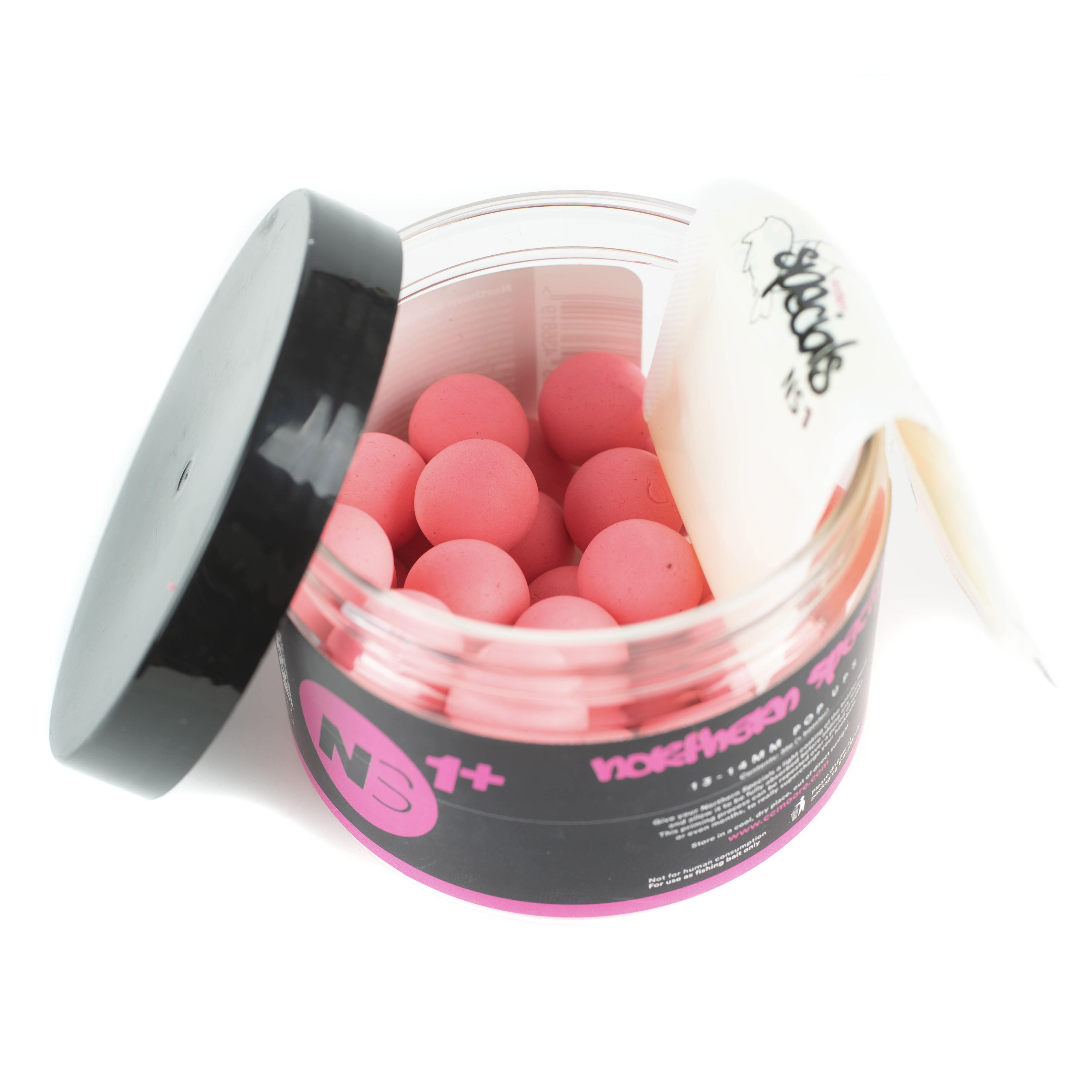 NS1+ v průměru 14 mm (35 ks), v barvách bílá, žlutá, růžová a oranžová jsou vylepšenou a především více plovoucí variantou klasických NS1. proto se velmi dobře hodí i pro lov ve sloupci způsobem Zig-rig nebo Chod-rig. Plovoucí boilie NS1 (Northern Specials) jsou vyráběny dle receptury anglického profi kapraře Gaze Farehama, který ji spolu se svými kamarády roky vypiplával k dokonalosti. Specifický citrusový nádech dává tušit silnou atraktivitu a použitelnost po celý rok včetně velmi studené vody. V kelímku je přiložený tekutý aktivátor, který můžete použít ve chvíli, kdyby při delším skladování začala vůně pomalu ochabovat.