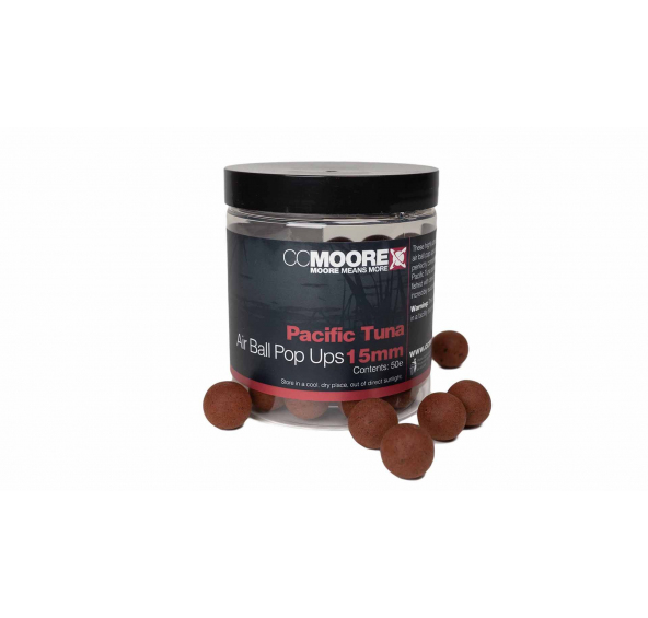 Pacific Tuna je úspěšná řada na bázi mořských produktů. CC Moore se podařilo skvěle zkombinovat Tuňákový protein a extrakt s dalšími surovinami a vznikla tak perfektní směs. Pop-up boilie v řadě Pacific Tuna má ještě výraznější vůni, než klasické boilie a výborně plave.