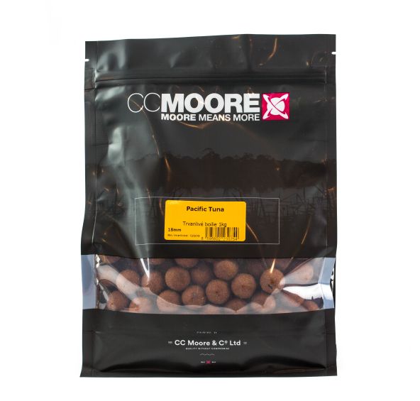Pacific Tuna je úspěšná řada na bázi mořských produktů. CC Moore se podařilo skvěle zkombinovat tuňákový protein a extrakt s dalšími surovinami. I když se jedná o boilie na rybí bázi, má skvělé výsledky při všech teplotách vody. Při vhození do vody začíná okamžitě reagovat a uvolňovat atraktivní látky. Povrch boilie je velmi specifický, dokonale přijímá dipy boostery atd. Při testování po celé Evropě se potvrdilo, že to je doslova magnet na kapry.