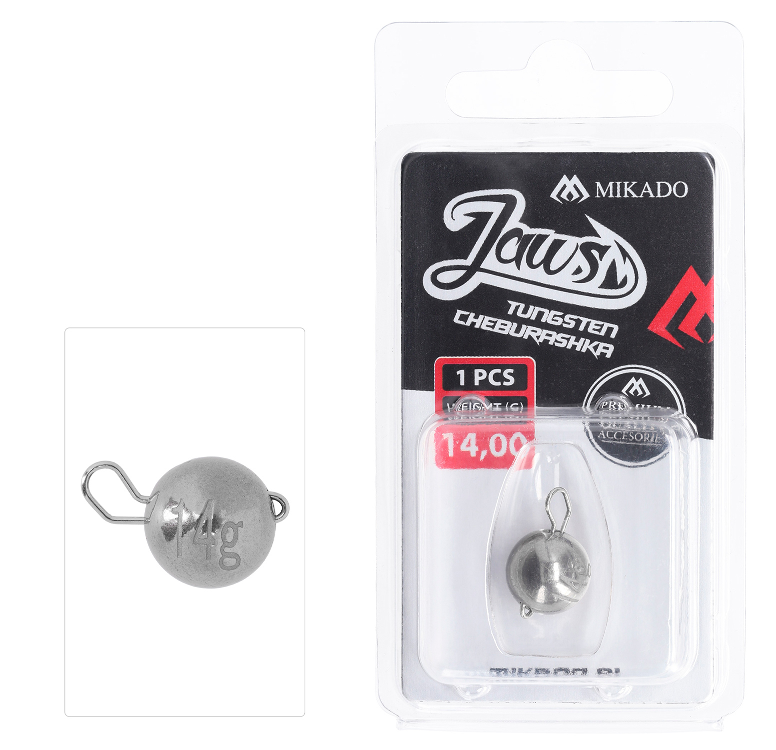 Čeburaška vyrobená z wolframu je určená pro měkké nástrahy a návazce pomocí kloubového spojení. Těžší hmotnost wolframu s přesně odlitým olovem umožňuje jejich použití na spřádacích sadách určených k lovu největších dravců....
