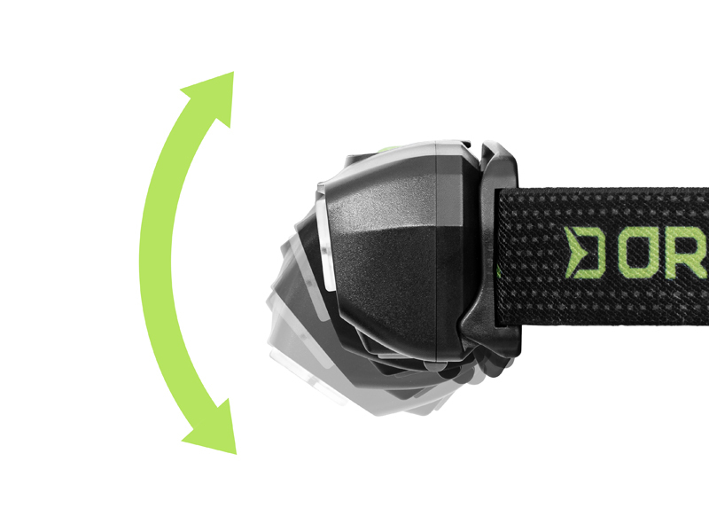 Pro maximální flexibilitu je čelová lampa ORBIX osazena na pohyblivém kloubu, který umožňuje nastavení úhlu sklonu. Elastický, délkově nastavitelný popruh zajišťuje pohodlné nošení pro každého.