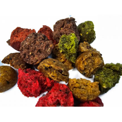 Používáme vývary a šťávy z partiklů různých směsí, abychom docílili co nejsilnější účinnosti. Tím se zvyšuje i výživová hodnota boilies. Doba rozpadu je cca 4-8 hodin v závislosti na proudu a teplotě vody. Krmné boilies je univerzální a tím ideální na kráté i dlouhé pobyty u vody. Nabídka v mnoha základních příchutích. Doporučené skladování originálního balení je do 20 °C a spotřeba do 12 měsíců od zakoupení. Po otevření je doporučené partikl co nejdříve zpracovat a uchovávat v chladu či zamrazit.