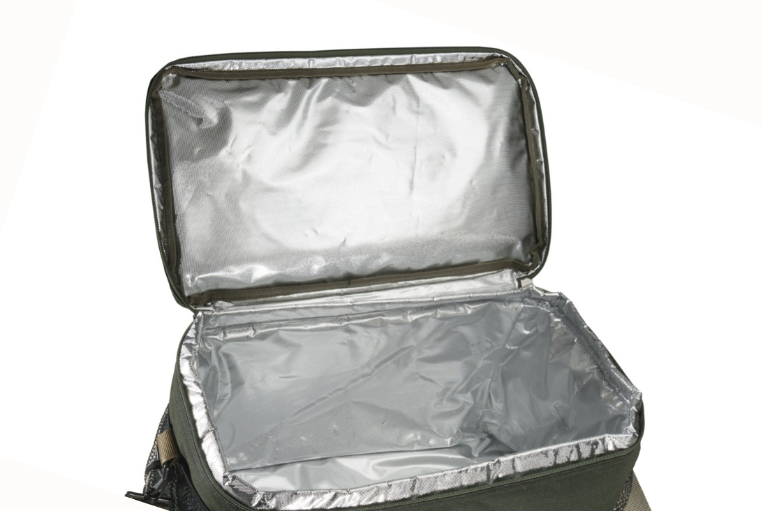 Prostorná chladící taška s metalickou fólií zlepšující izolační vlastnosti. Je vhodná pro uchování nástrah nebo potravin v chladu. Materiál B-POL600D zajišťuje vysokou odolnost a omyvatelnost.