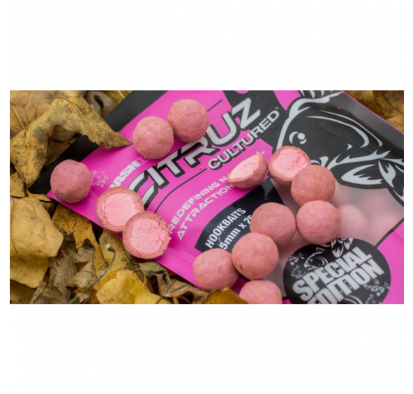 Opakovaně vrstvený obal, který je nanášen přes neutrálně vyvážené boilies s využitím jedinečného dvouvrstvého procesu. Vrchní část Citruz Cultured® Hookbaits je sprejem infuzováný suchý prášek, který obsahuje přísady ,,zabijáckého,, Citruzu. Nástraha, která zabere, když všechny ostatní selžou.