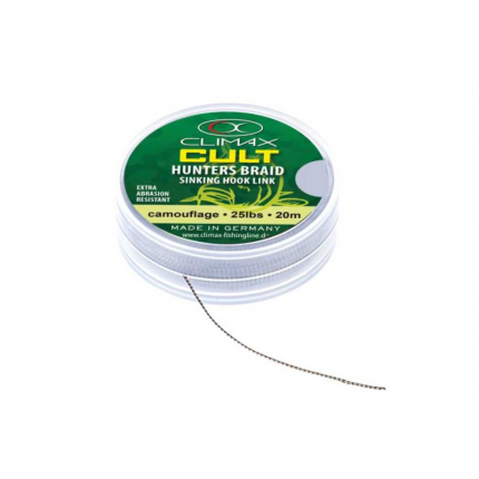 CLIMAX šňůra 20m - HUNTERS BRAID Díky maskovacímu povrchu je téměř neviditelná ve vodě a po usazení na dno je tato potápivá šňůra dokonale maskovaná. Šňůra určená pro lov kaprů umožňuje perfektní kamufláž téměř při každém rybolovu a je téměř nenahraditelná iv těch nejtěžších podmínkách. Nepovolí ani v nejtěžších překážkách jako jsou kameny n...