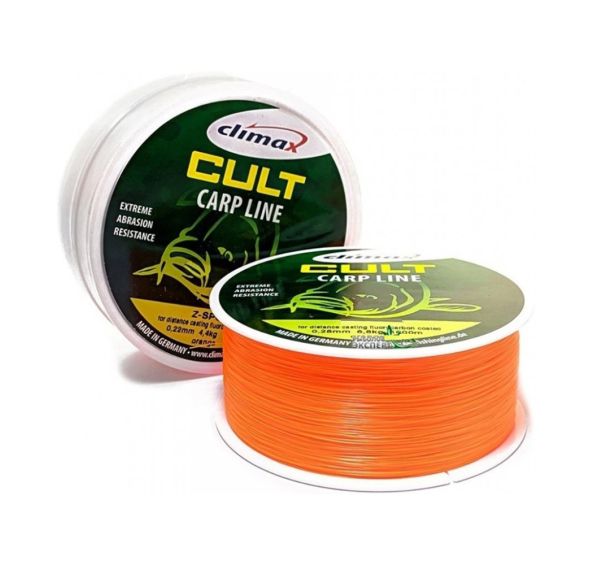 Popis produktu CLIMAX silon CULT Carp Line 600m Fluo-Orange Průměr: 0,34mm nosnost: 9kg