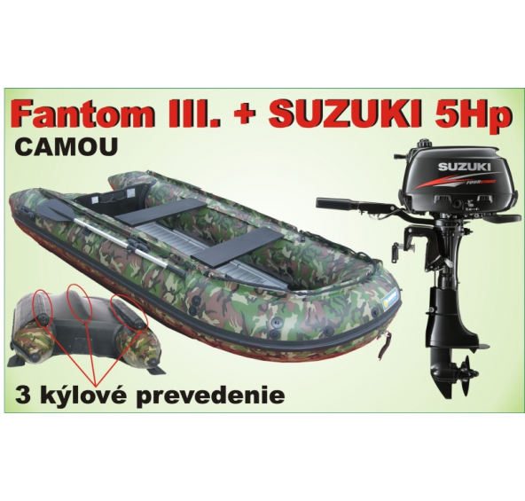 Nafukovací čln Fantom CAMOU s motorom SUZUKI 5Hp