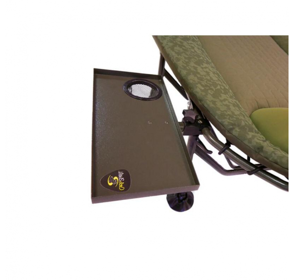 • Malý, snadno a rychle odnímatelný stolek je báječným doplňkem k lehátkům a křeslům Carp Spirit • Stolek je umístitelný na trubky o průměru 22 mm • Nabízí úložný prostor na manipulaci s výbavou nebo prostor k odložení stravy či kelímku s nápojem při odpočinku