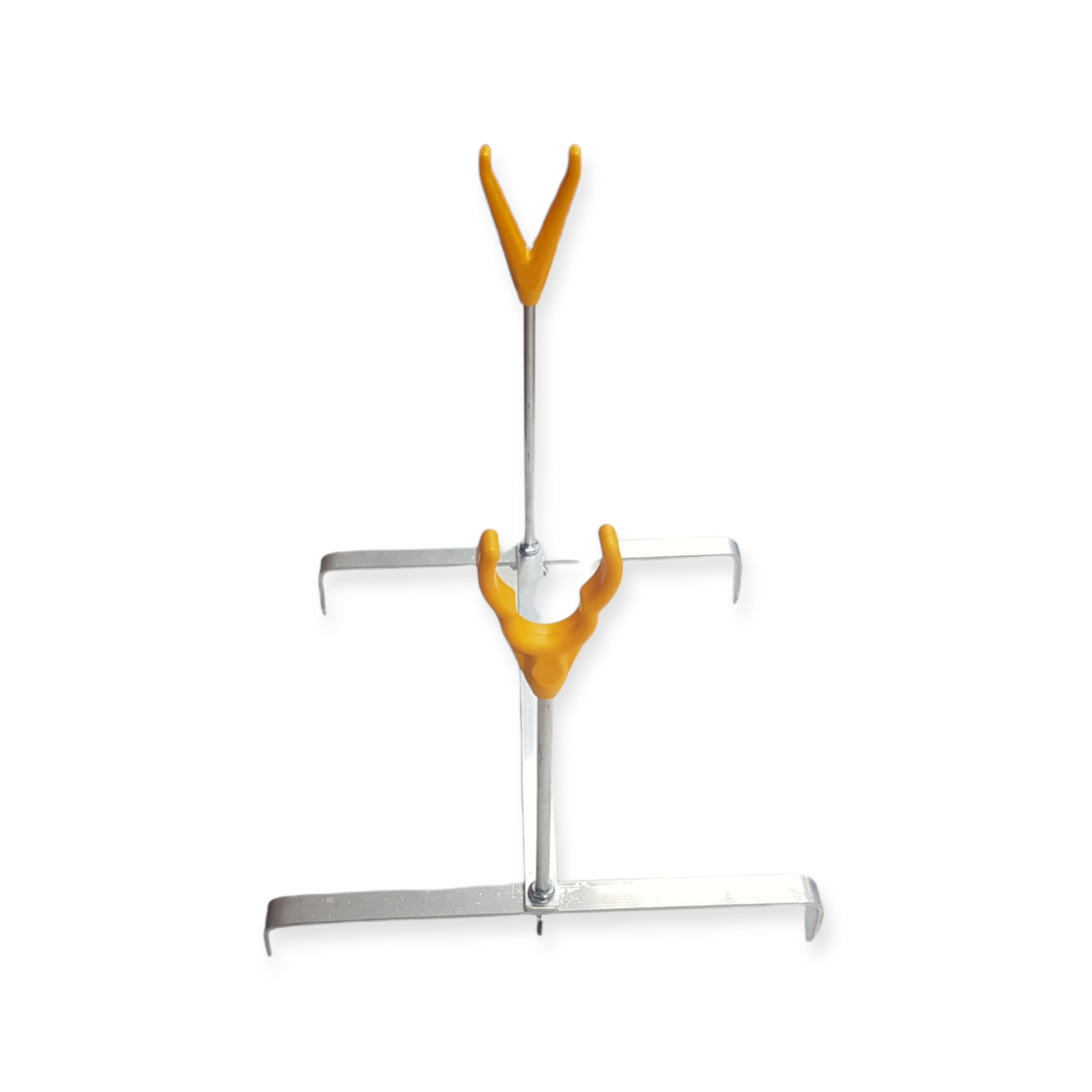 Duralový stojánek typu rodpod. Je v mžiku postavený, vybavený dvěma rohatinkama pro snadné uchycení prutu. Špičaté nohy pomůžou dokonalému ukotvení na lovném místě.