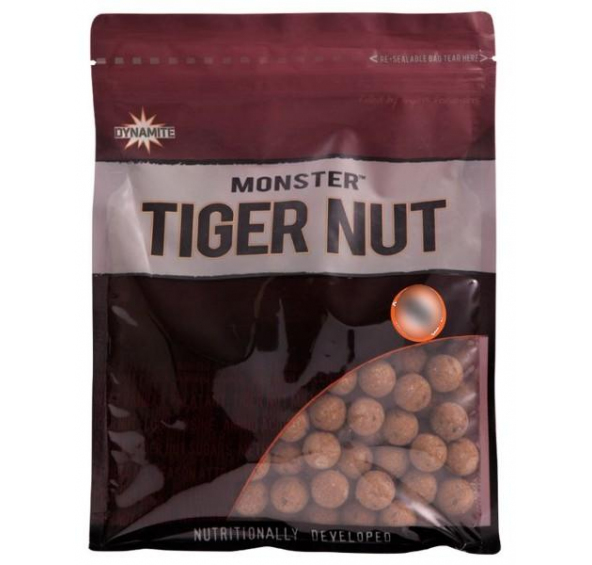 Dynamite Baits Boilies Monster TigerNut 20mm 1kg - bolies s příchutí tygřího ořechu • Kombinace přírodních cukrů a atraktantů extrahovaných z tygřích ořechů je obohacena přírodními dochucovadly • Vyrobeno z moučky rozemletého tygřího ořechu a přídavku mléka z tygřího ořechu jako přírodního tekutého atraktantu