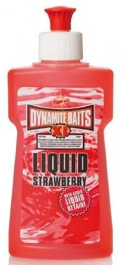 Dynamite Baits Liquid XL Strawberry 250ml - silné, tekuté aroma s příchutí jahod • Obohaceno betainem • Slouží k obohacení boilií,sypkých směsí, pelet a háčkových návnad