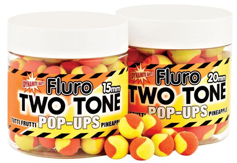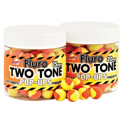 Dynamite Baits Pop-Ups - Fluro Two Tone Tutti-Frutti & Pineapple 15mm • Rozšíření řady mimořádně úspěšných plovoucích boilií Fluro Pop-Up • Dává rybáři přidanou hodnotu v současném užití dvou chutí a barev v jediné návnadě! • Ohromující návnada pro chytání kaprů