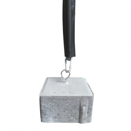 Součástí balení bójky DAEMONS 05 R1 je také betonová kotva o váze 1,7kg s okem a karabinou pro uchycení na spodní kotvící díl bójky.
